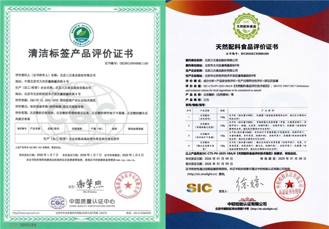 其中,“清洁标签产品0级”评价作为清洁标签中的一大严格等级,要求配料中不含香精、色素、防腐剂等GB2760中允许使用的添加剂,且生产全程无添加剂添加或带入风险;“天然配料食品”评价则聚焦配料天然性评价,覆盖原料溯源、生产工艺、成分检测全流程,填补了国内食品配料天然性评价的空白。双重权威评价,意味着三元北京酸奶“干净”且“真天然”,为消费者提供了科学可信的选购依据,构建起消费者信任的“品质防火墙”。