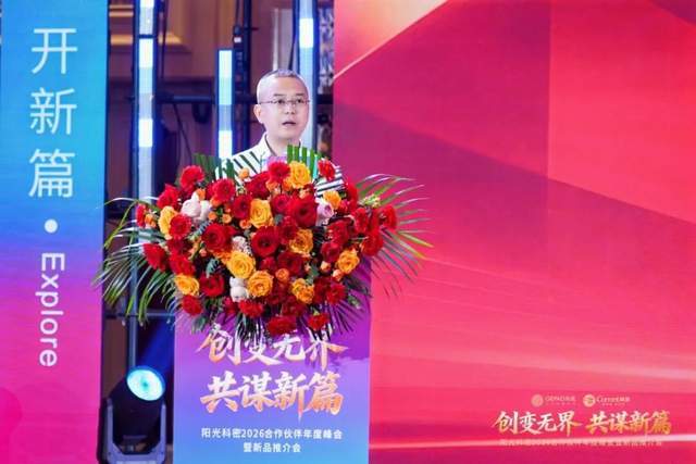 随后,广东阳光科密集团董事长陈善明先生发表题为《责任铸十年实干启新程》的主旨演讲。他坦诚回顾了过去十年的发展历程,直言过去既有高光时刻,也有错失风口的遗憾,市场已进入多元全面竞争时代。面向未来,他正式发布第二个十年战略规划:以“靠谱、实干”为核心价值观,从产品、品牌、平台、渠道、市场等多领域逐个破局,走出新路。