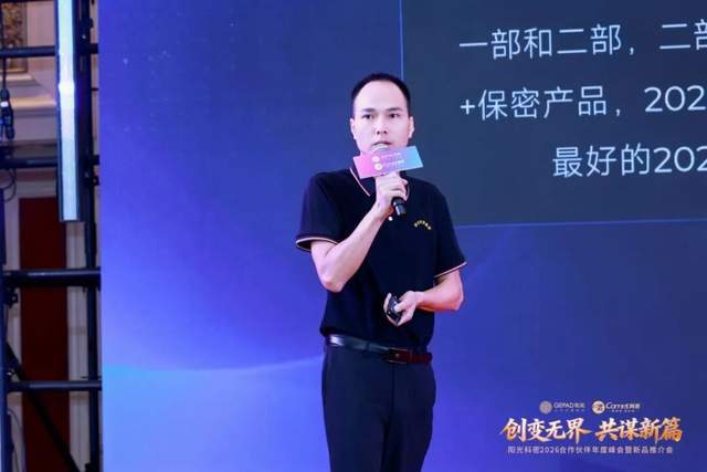歌派渠道部副总监陈绍回顾了歌派品牌“前途光明、道路曲折”的发展历程,明确了专注政府采购与保密市场的战略方向,与公司多个部门协同作战,共拓歌派的美好未来。他提出“一省一代理”政策保障代理商独家权益,希望代理商深耕本地政采市场,并以“保密室标准化建设方案”为核心,依托几十款保密认证产品,抢占超15亿的保密硬件市场。他指出,2026年歌派已成功入围多地框架协议采购,号召代理商把握政策红利,乘势而上!