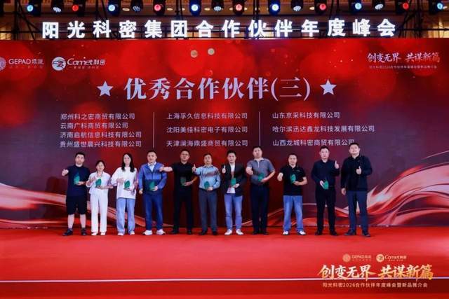 当然,阳光科密的辉煌今天,离不开全国合作伙伴们多年风雨同舟的陪伴与做出的卓越贡献。为表达感恩,铭记每一次携手、回馈每一份信任,阳光科密开启了年度优秀合作伙伴颁奖盛典,将峰会气氛推向高潮!